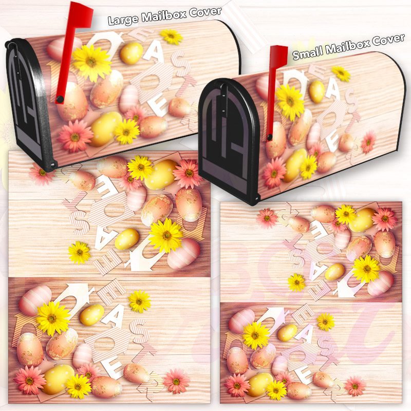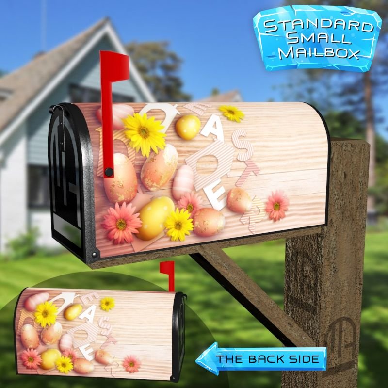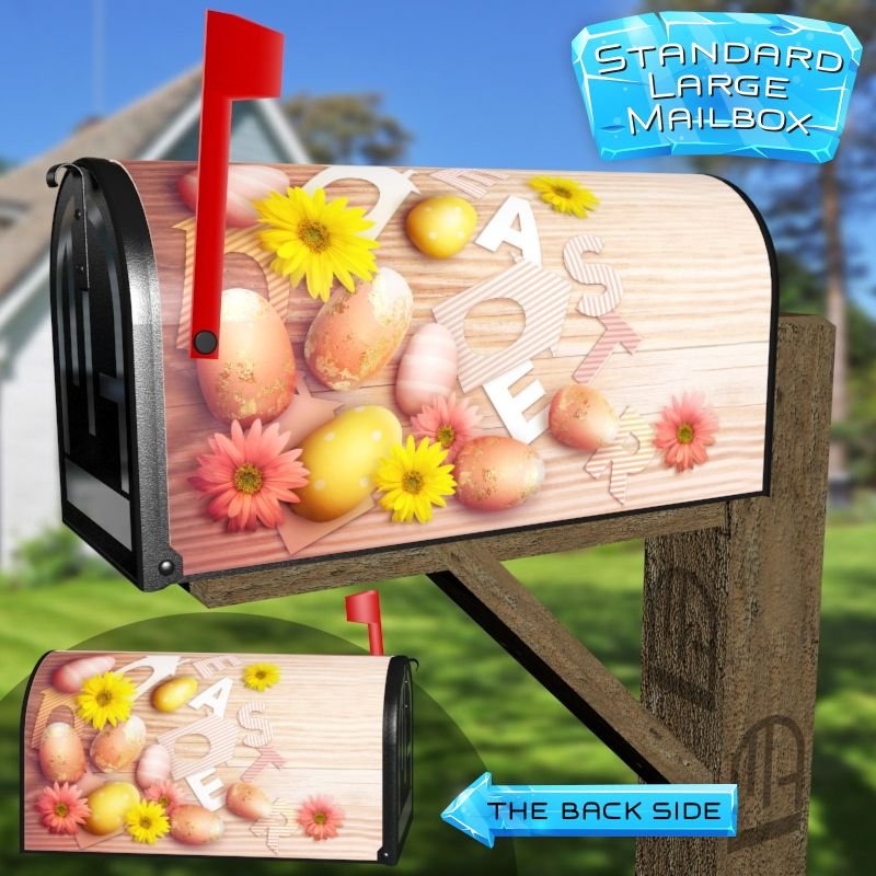Dressing up your rural farm mailbox with the Easter Cut Out Letters With Colorful Easter Eggs On Wood mailbox cover is an easy way to convert it into a unique and special item. These covers require a smooth surface, so they are compatible with rural farm mailboxes that do not have any embossed decorations or signs. Magnetic mailbox covers work with steel boxes only, while self-adhesive vinyl covers are available for aluminum, plastic and steel boxes. If your mailbox is not compatible with these covers, you can purchase a brand new mailbox with a preinstalled cover. Additionally, you have the option to create a custom rural farm mailbox cover with your own pictures, name, street number, etc.