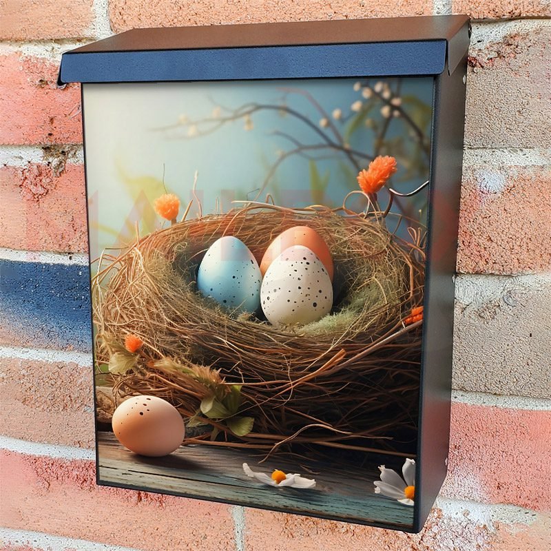 This Easter Day Nest with Colorful Eggs and White Flowers mailbox design was created by Krisztina Soos