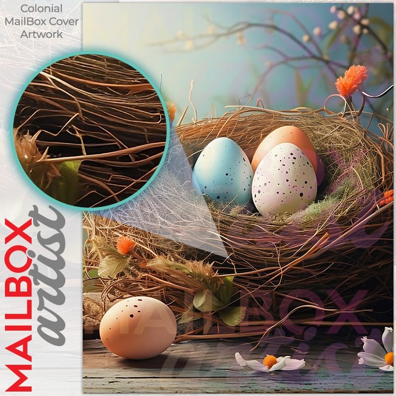 With this Easter Day Nest with Colorful Eggs and White Flowers colonial mailbox cover it’s pretty easy to convert your mailbox to a special and unique item. These covers require a flat surface, so they work with colonial mailboxes that do not have any embossed decoration or signs. Magnetic mailbox covers work with steel colonial boxes only, while self-adhesive vinyl covers are available for aluminum, plastic and steel boxes. We also offer both self-adhesive and magnetic covers with regular opaque white vinyl or reflective vinyl, which works similarly to license plates or road signs. The reflective option makes the entire cover’s surface reflective, ensuring visibility at night. In case your mailbox doesn’t work with these covers, you can purchase the preinstalled cover on a brand new mailbox as well. Also, you can create your custom colonial mailbox cover using you own pictures, adding your name, street number, etc.