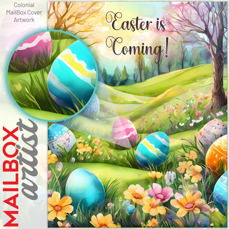 With this Eater Time in the Meadow colonial mailbox cover it’s pretty easy to convert your mailbox to a special and unique item. These covers require a flat surface, so they work with colonial mailboxes that do not have any embossed decoration or signs. Magnetic mailbox covers work with steel colonial boxes only, while self-adhesive vinyl covers are available for aluminum, plastic and steel boxes. We also offer both self-adhesive and magnetic covers with regular opaque white vinyl or reflective vinyl, which works similarly to license plates or road signs. The reflective option makes the entire cover’s surface reflective, ensuring visibility at night. In case your mailbox doesn’t work with these covers, you can purchase the preinstalled cover on a brand new mailbox as well. Also, you can create your custom colonial mailbox cover using you own pictures, adding your name, street number, etc.