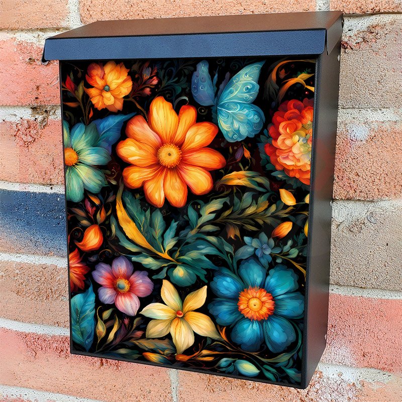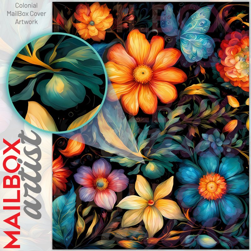 With this European Folk Flowers colonial mailbox cover it’s pretty easy to convert your mailbox to a special and unique item. These covers require a flat surface, so they work with colonial mailboxes that do not have any embossed decoration or signs. Magnetic mailbox covers work with steel colonial boxes only, while self-adhesive vinyl covers are available for aluminum, plastic and steel boxes. We also offer both self-adhesive and magnetic covers with regular opaque white vinyl or reflective vinyl, which works similarly to license plates or road signs. The reflective option makes the entire cover’s surface reflective, ensuring visibility at night. In case your mailbox doesn’t work with these covers, you can purchase the preinstalled cover on a brand new mailbox as well. Also, you can create your custom colonial mailbox cover using you own pictures, adding your name, street number, etc.