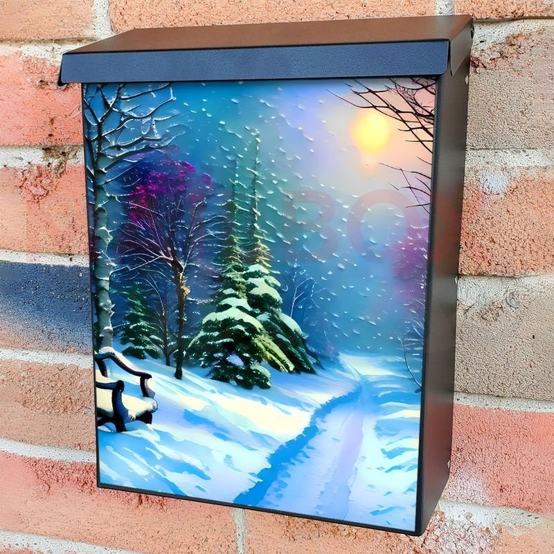 With this Evening in a Snowy Forest colonial mailbox cover it’s pretty easy to convert your mailbox to a special and unique item. These covers require a flat surface, so they work with colonial mailboxes that do not have any embossed decoration or signs. In case your mailbox doesn’t work with these covers, you can purchase the preinstalled cover on a brand new mailbox as well. Also, you can create your custom colonial mailbox cover using you own pictures, adding your name, street number, etc.
