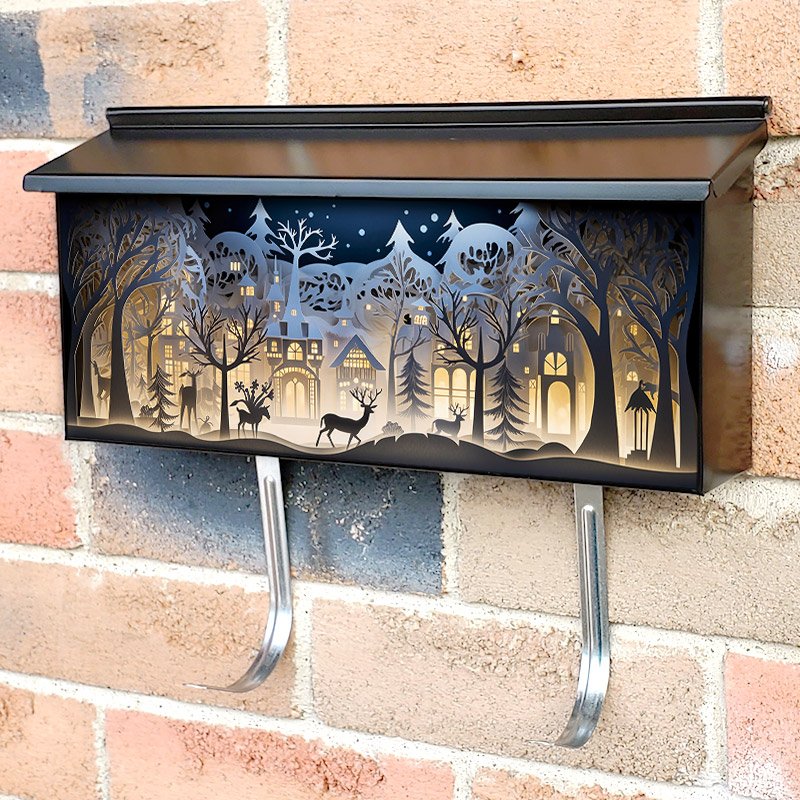 Applying your Fairy Tale Paper Cut Christmas Winter Scene townhouse / ranch mailbox cover it’s pretty easy to convert your mailbox to a special and unique item. These covers require a flat surface, so they work with townhouse / ranch mailboxes that do not have any embossed decoration or signs. Magnetic mailbox covers work with steel boxes, for aluminum and plastic boxes we offer the self-adhesive vinyl covers. In case your mailbox doesn’t work with these covers, you can purchase the preinstalled cover on a brand new mailbox as well. Also, you can create your custom townhouse / ranch mailbox cover using you own pictures, adding your name, street number, etc.