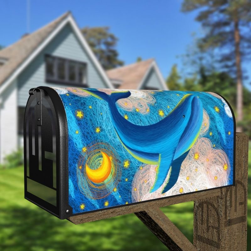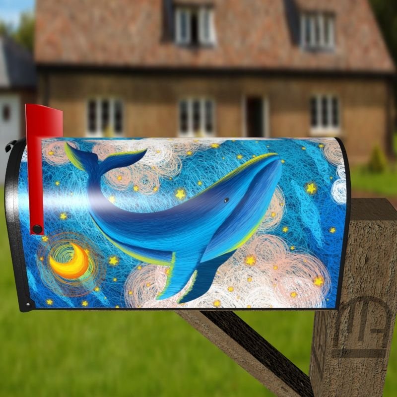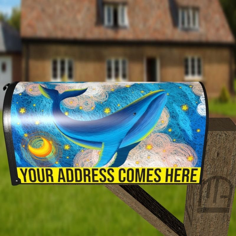 Grab this creative Fairytale Whales #6 rural/curbside/farm mailbox cover as self adhesive vinyl or magnetic cover. Our magnetic covers have the magnetic surface under the whole design, not only two magnet strips like in cheaper products. We also offer both the self adhesive and the magnetic covers with regular opaque white vinyl or reflective vinyl which works the same way as the licence plates or road signs; pretty visible at night. We make these covers for both large and small mailboxes.