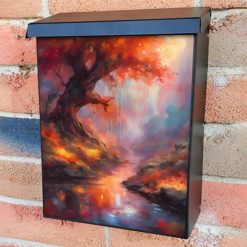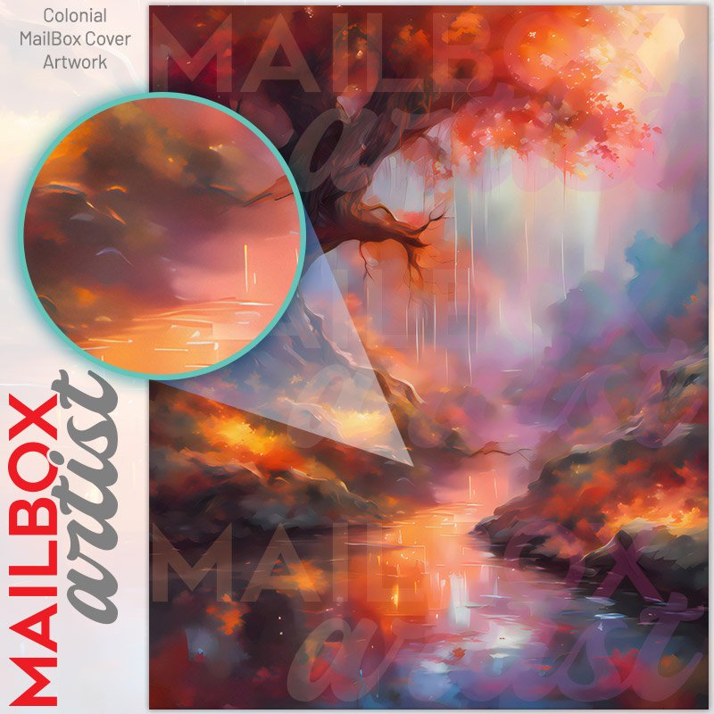With this Fantasy Autumn Tree colonial mailbox cover it’s pretty easy to convert your mailbox to a special and unique item. These covers require a flat surface, so they work with colonial mailboxes that do not have any embossed decoration or signs. Magnetic mailbox covers work with steel colonial boxes only, while self-adhesive vinyl covers are available for aluminum, plastic and steel boxes. We also offer both self-adhesive and magnetic covers with regular opaque white vinyl or reflective vinyl, which works similarly to license plates or road signs. The reflective option makes the entire cover’s surface reflective, ensuring visibility at night. In case your mailbox doesn’t work with these covers, you can purchase the preinstalled cover on a brand new mailbox as well. Also, you can create your custom colonial mailbox cover using you own pictures, adding your name, street number, etc.