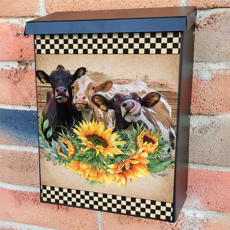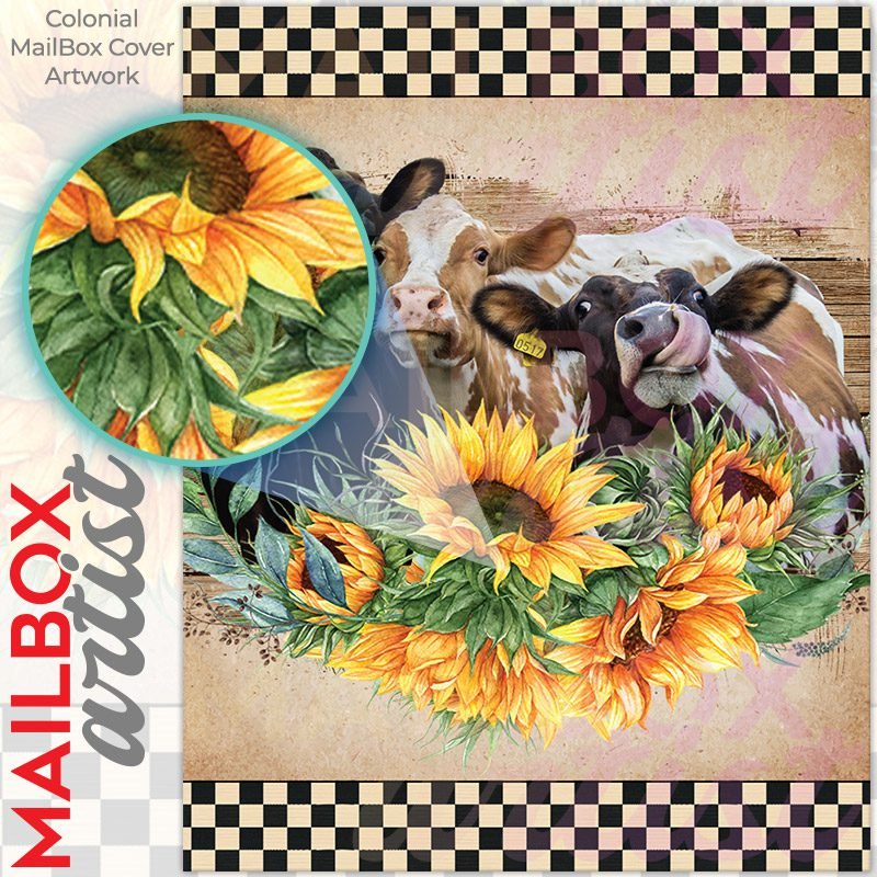With this Farmhouse Cow Trio colonial mailbox cover it’s pretty easy to convert your mailbox to a special and unique item. These covers require a flat surface, so they work with colonial mailboxes that do not have any embossed decoration or signs. Magnetic mailbox covers work with steel colonial boxes only, while self-adhesive vinyl covers are available for aluminum, plastic and steel boxes. We also offer both self-adhesive and magnetic covers with regular opaque white vinyl or reflective vinyl, which works similarly to license plates or road signs. The reflective option makes the entire cover’s surface reflective, ensuring visibility at night. In case your mailbox doesn’t work with these covers, you can purchase the preinstalled cover on a brand new mailbox as well. Also, you can create your custom colonial mailbox cover using you own pictures, adding your name, street number, etc.
