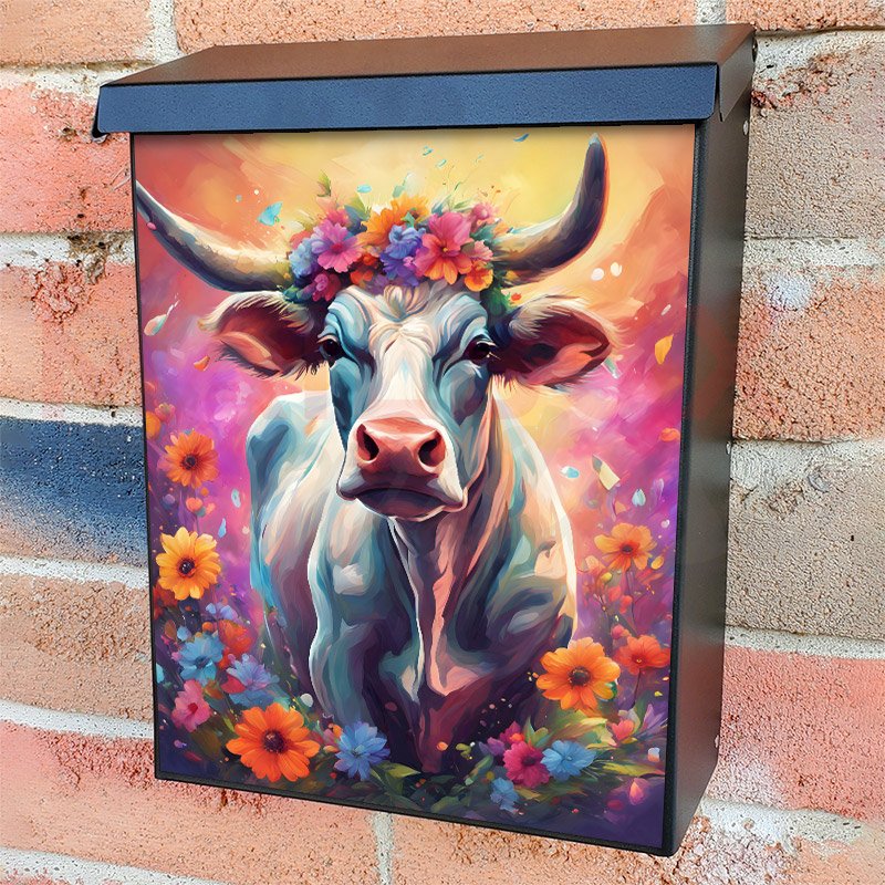 This Farmhouse Cow with Flowers mailbox design was created by Krisztina Soos
