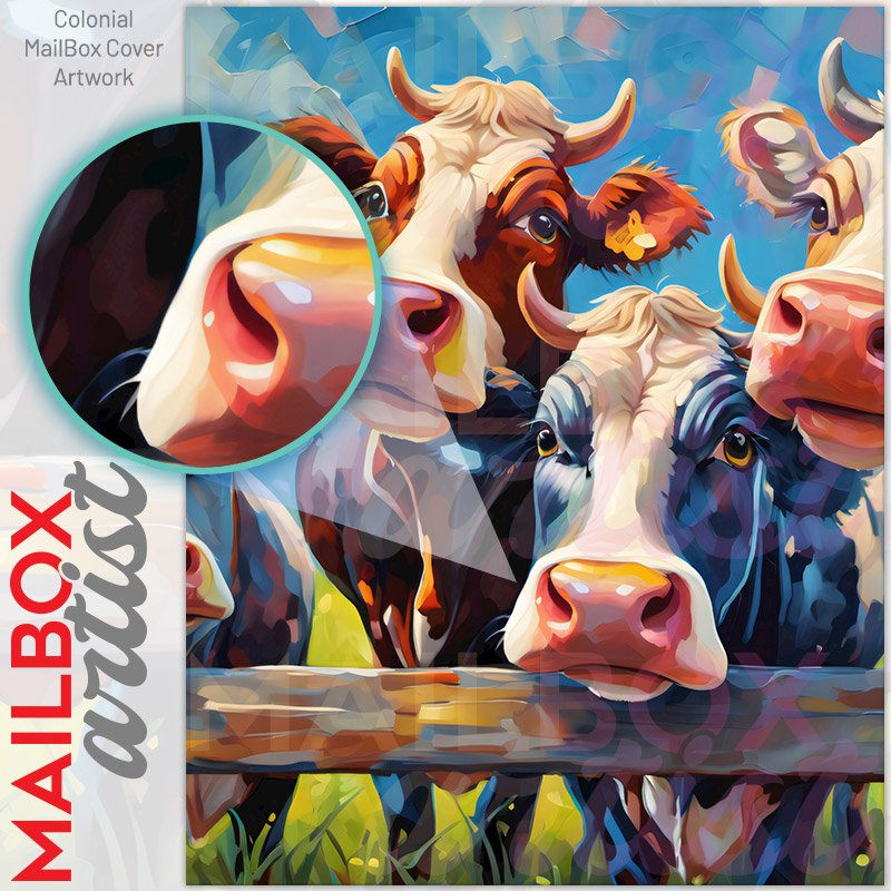 Farmhouse Cows Over the Fence Colonial Mailbox Cover
