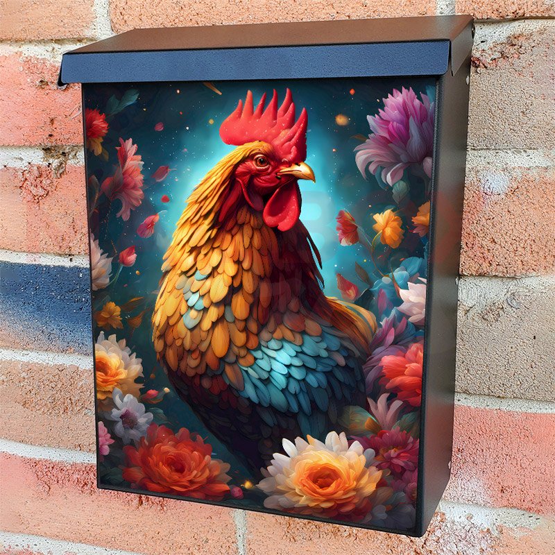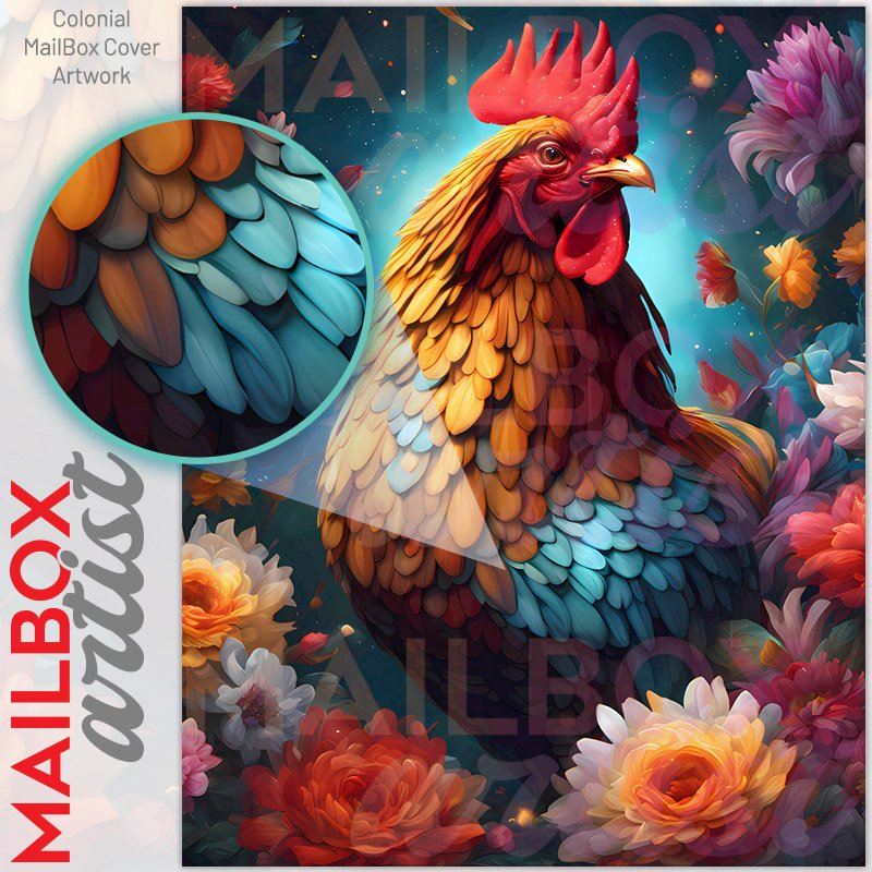 With this Farmhouse Rooster with Flowers colonial mailbox cover it’s pretty easy to convert your mailbox to a special and unique item. These covers require a flat surface, so they work with colonial mailboxes that do not have any embossed decoration or signs. Magnetic mailbox covers work with steel colonial boxes only, while self-adhesive vinyl covers are available for aluminum, plastic and steel boxes. We also offer both self-adhesive and magnetic covers with regular opaque white vinyl or reflective vinyl, which works similarly to license plates or road signs. The reflective option makes the entire cover’s surface reflective, ensuring visibility at night. In case your mailbox doesn’t work with these covers, you can purchase the preinstalled cover on a brand new mailbox as well. Also, you can create your custom colonial mailbox cover using you own pictures, adding your name, street number, etc.