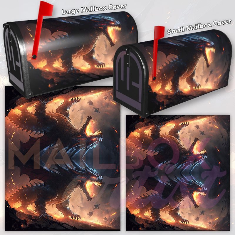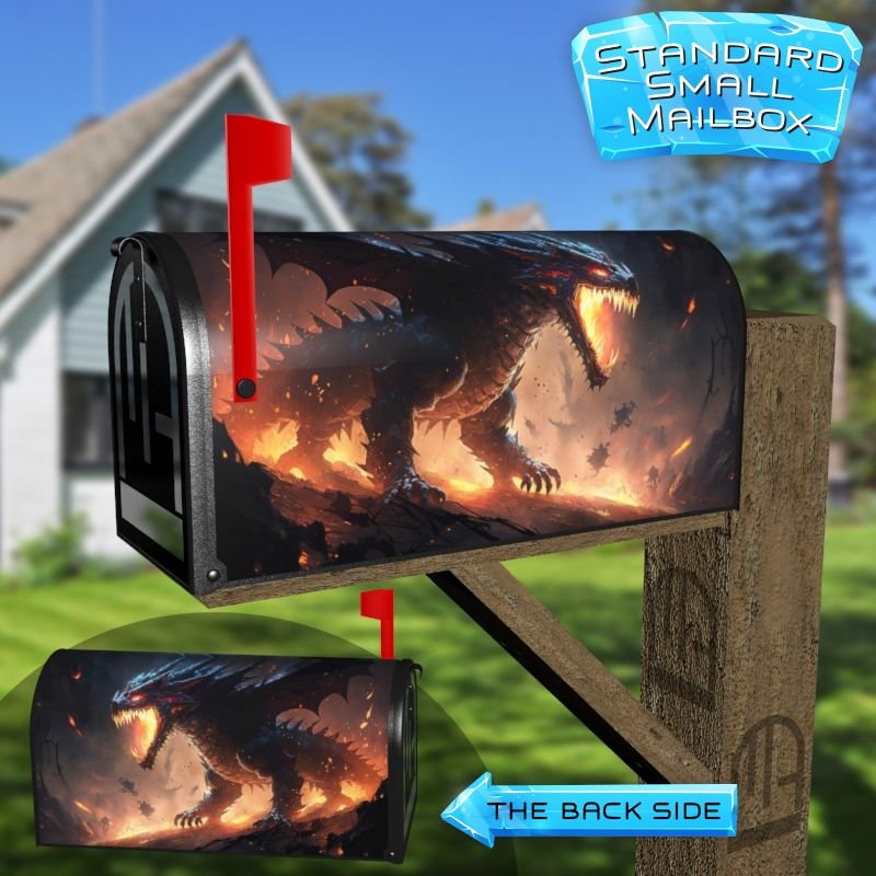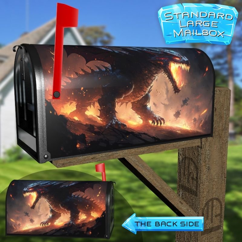 Dressing up your rural farm mailbox with the Fire Breathes Explode From A Giant Dragon In A Black Night mailbox cover is an easy way to convert it into a unique and special item. These covers require a smooth surface, so they are compatible with rural farm mailboxes that do not have any embossed decorations or signs. Magnetic mailbox covers work with steel boxes only, while self-adhesive vinyl covers are available for aluminum, plastic and steel boxes. If your mailbox is not compatible with these covers, you can purchase a brand new mailbox with a preinstalled cover. Additionally, you have the option to create a custom rural farm mailbox cover with your own pictures, name, street number, etc.