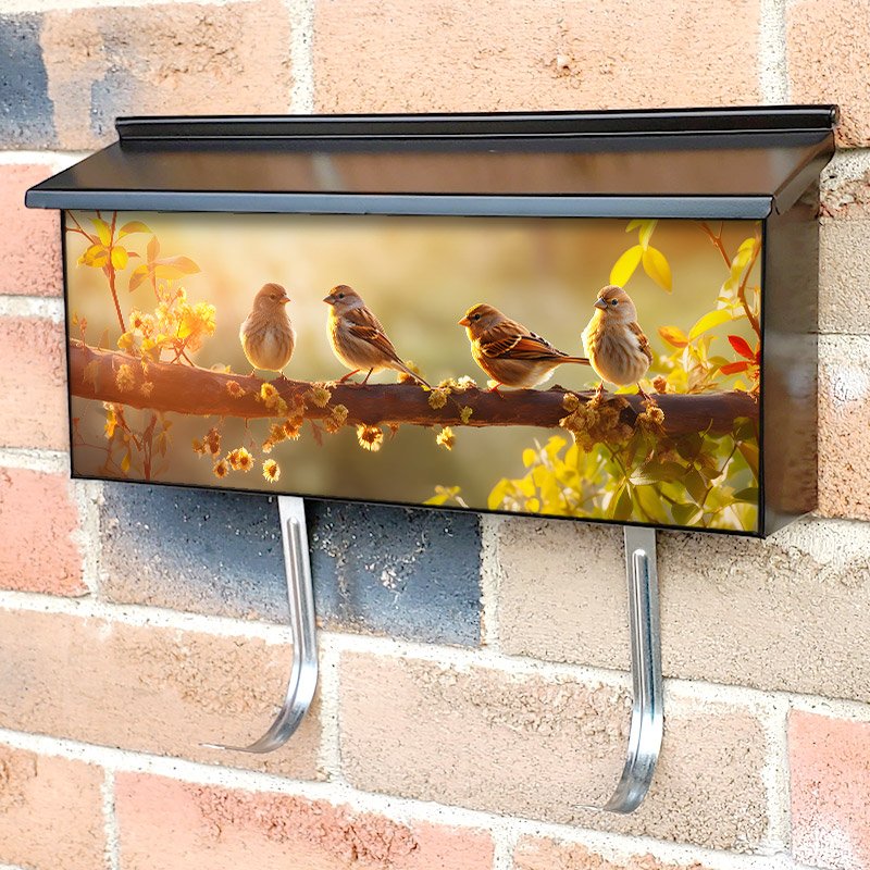 Applying your Flock Of Tree Sparrows On The Branch In A Garden 2 townhouse / ranch mailbox cover it’s pretty easy to convert your mailbox to a special and unique item. These covers require a flat surface, so they work with townhouse / ranch mailboxes that do not have any embossed decoration or signs. Magnetic mailbox covers work with steel boxes, for aluminum and plastic boxes we offer the self-adhesive vinyl covers. In case your mailbox doesn’t work with these covers, you can purchase the preinstalled cover on a brand new mailbox as well. Also, you can create your custom townhouse / ranch mailbox cover using you own pictures, adding your name, street number, etc.