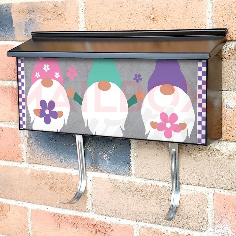 Applying your Flower Gnomes townhouse / ranch mailbox cover it’s pretty easy to convert your mailbox to a special and unique item. These covers require a flat surface, so they work with townhouse / ranch mailboxes that do not have any embossed decoration or signs. Magnetic mailbox covers work with steel boxes, for aluminum and plastic boxes we offer the self-adhesive vinyl covers. In case your mailbox doesn’t work with these covers, you can purchase the preinstalled cover on a brand new mailbox as well. Also, you can create your custom townhouse / ranch mailbox cover using you own pictures, adding your name, street number, etc.