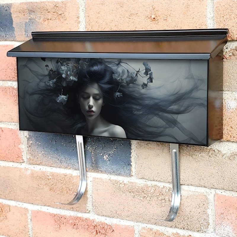 Applying your Flowers Illustration With Black Haired Woman townhouse / ranch mailbox cover it’s pretty easy to convert your mailbox to a special and unique item. These covers require a flat surface, so they work with townhouse / ranch mailboxes that do not have any embossed decoration or signs. Magnetic mailbox covers work with steel boxes, for aluminum and plastic boxes we offer the self-adhesive vinyl covers. In case your mailbox doesn’t work with these covers, you can purchase the preinstalled cover on a brand new mailbox as well. Also, you can create your custom townhouse / ranch mailbox cover using you own pictures, adding your name, street number, etc.