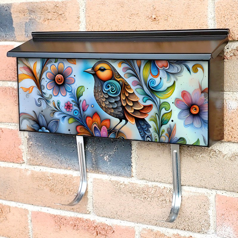 Applying your Folklore Bird and Flowers townhouse / ranch mailbox cover it’s pretty easy to convert your mailbox to a special and unique item. These covers require a flat surface, so they work with townhouse / ranch mailboxes that do not have any embossed decoration or signs. Magnetic mailbox covers work with steel boxes, for aluminum and plastic boxes we offer the self-adhesive vinyl covers. In case your mailbox doesn’t work with these covers, you can purchase the preinstalled cover on a brand new mailbox as well. Also, you can create your custom townhouse / ranch mailbox cover using you own pictures, adding your name, street number, etc.