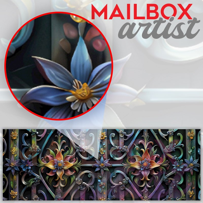 Applying your Forged Iron Gate and Flowers townhouse / ranch mailbox cover it’s pretty easy to convert your mailbox to a special and unique item. These covers require a flat surface, so they work with townhouse / ranch mailboxes that do not have any embossed decoration or signs. Magnetic mailbox covers work with steel boxes, for aluminum and plastic boxes we offer the self-adhesive vinyl covers. In case your mailbox doesn’t work with these covers, you can purchase the preinstalled cover on a brand new mailbox as well. Also, you can create your custom townhouse / ranch mailbox cover using you own pictures, adding your name, street number, etc.