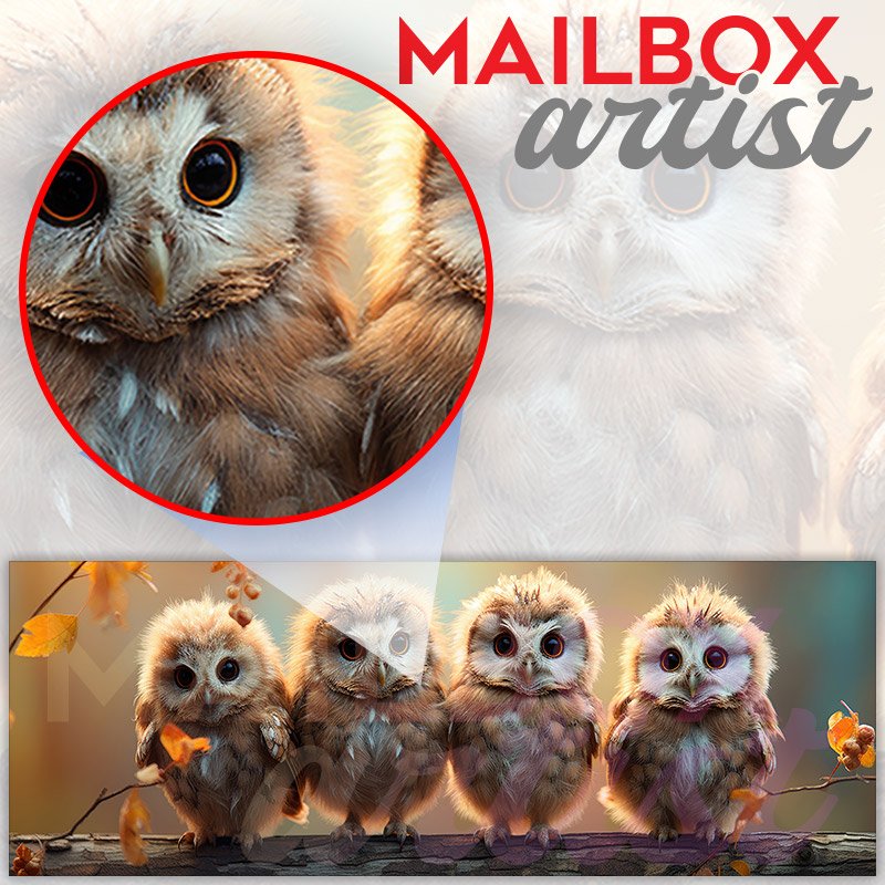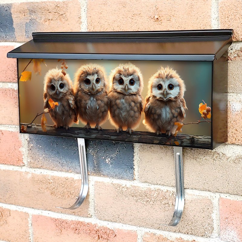 Applying your Four Cute And Funny Owlets townhouse / ranch mailbox cover it’s pretty easy to convert your mailbox to a special and unique item. These covers require a flat surface, so they work with townhouse / ranch mailboxes that do not have any embossed decoration or signs. Magnetic mailbox covers work with steel boxes, for aluminum and plastic boxes we offer the self-adhesive vinyl covers. In case your mailbox doesn’t work with these covers, you can purchase the preinstalled cover on a brand new mailbox as well. Also, you can create your custom townhouse / ranch mailbox cover using you own pictures, adding your name, street number, etc.