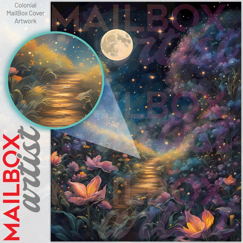 With this Full Moon above the Meadow colonial mailbox cover it’s pretty easy to convert your mailbox to a special and unique item. These covers require a flat surface, so they work with colonial mailboxes that do not have any embossed decoration or signs. Magnetic mailbox covers work with steel colonial boxes only, while self-adhesive vinyl covers are available for aluminum, plastic and steel boxes. We also offer both self-adhesive and magnetic covers with regular opaque white vinyl or reflective vinyl, which works similarly to license plates or road signs. The reflective option makes the entire cover’s surface reflective, ensuring visibility at night. In case your mailbox doesn’t work with these covers, you can purchase the preinstalled cover on a brand new mailbox as well. Also, you can create your custom colonial mailbox cover using you own pictures, adding your name, street number, etc.