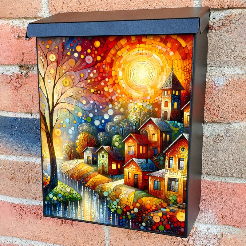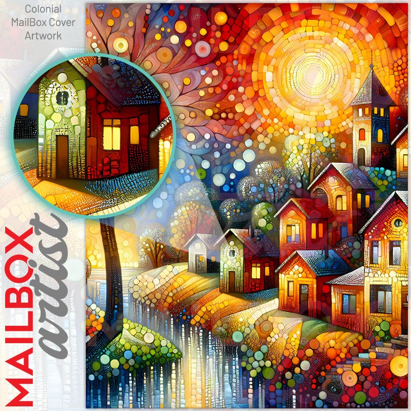 With this Full Moon above the Village colonial mailbox cover it’s pretty easy to convert your mailbox to a special and unique item. These covers require a flat surface, so they work with colonial mailboxes that do not have any embossed decoration or signs. Magnetic mailbox covers work with steel colonial boxes only, while self-adhesive vinyl covers are available for aluminum, plastic and steel boxes. We also offer both self-adhesive and magnetic covers with regular opaque white vinyl or reflective vinyl, which works similarly to license plates or road signs. The reflective option makes the entire cover’s surface reflective, ensuring visibility at night. In case your mailbox doesn’t work with these covers, you can purchase the preinstalled cover on a brand new mailbox as well. Also, you can create your custom colonial mailbox cover using you own pictures, adding your name, street number, etc.