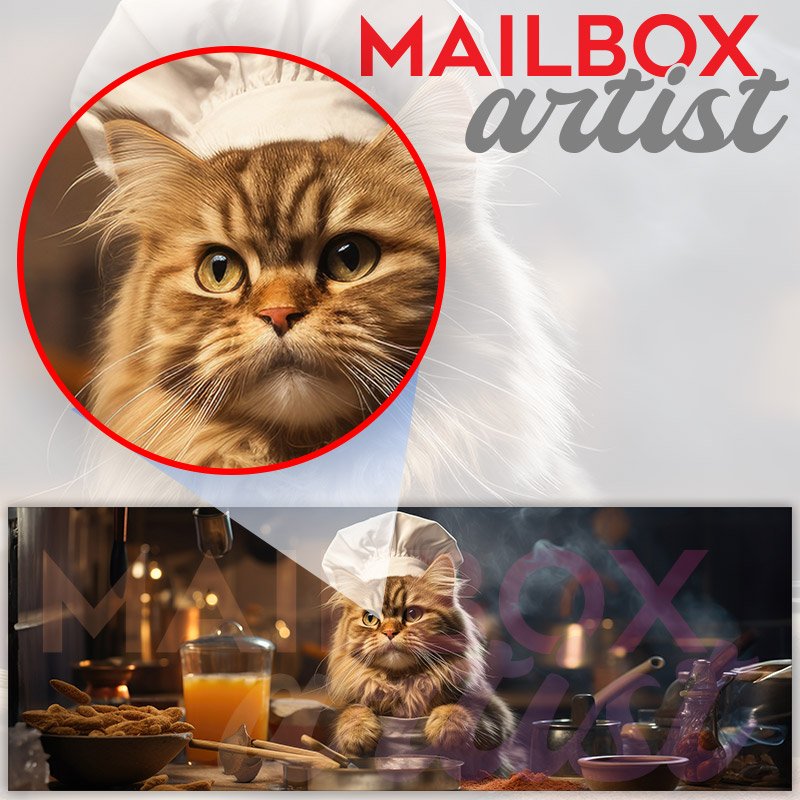 Applying your Funny Cat Prepares Food In The Kitchen townhouse / ranch mailbox cover it’s pretty easy to convert your mailbox to a special and unique item. These covers require a flat surface, so they work with townhouse / ranch mailboxes that do not have any embossed decoration or signs. Magnetic mailbox covers work with steel boxes, for aluminum and plastic boxes we offer the self-adhesive vinyl covers. In case your mailbox doesn’t work with these covers, you can purchase the preinstalled cover on a brand new mailbox as well. Also, you can create your custom townhouse / ranch mailbox cover using you own pictures, adding your name, street number, etc.