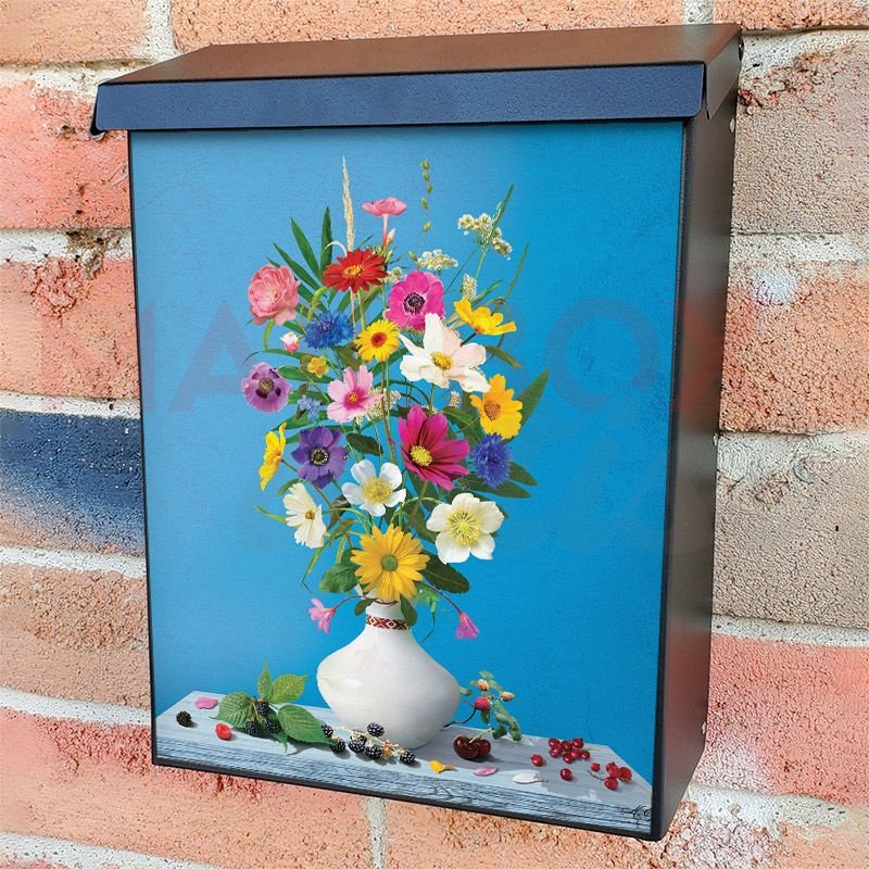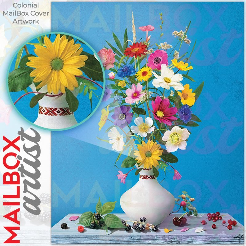 With this Garden Flower Bouquet #1 colonial mailbox cover it’s pretty easy to convert your mailbox to a special and unique item. These covers require a flat surface, so they work with colonial mailboxes that do not have any embossed decoration or signs. Magnetic mailbox covers work with steel colonial boxes only, while self-adhesive vinyl covers are available for aluminum, plastic and steel boxes. We also offer both self-adhesive and magnetic covers with regular opaque white vinyl or reflective vinyl, which works similarly to license plates or road signs. The reflective option makes the entire cover’s surface reflective, ensuring visibility at night. In case your mailbox doesn’t work with these covers, you can purchase the preinstalled cover on a brand new mailbox as well. Also, you can create your custom colonial mailbox cover using you own pictures, adding your name, street number, etc.