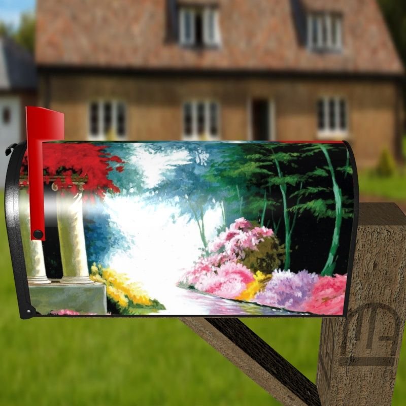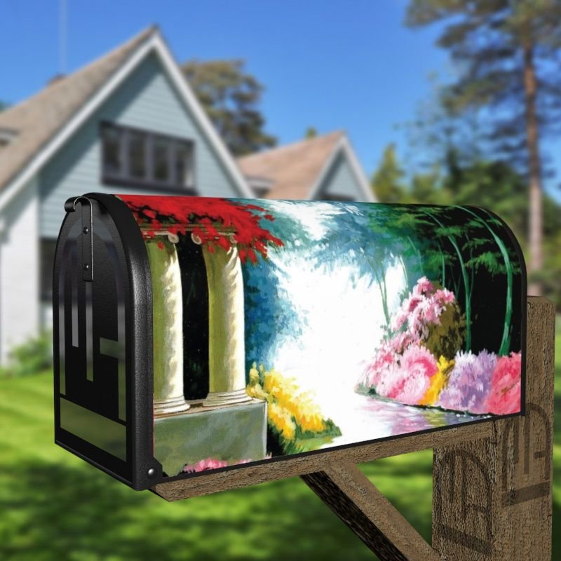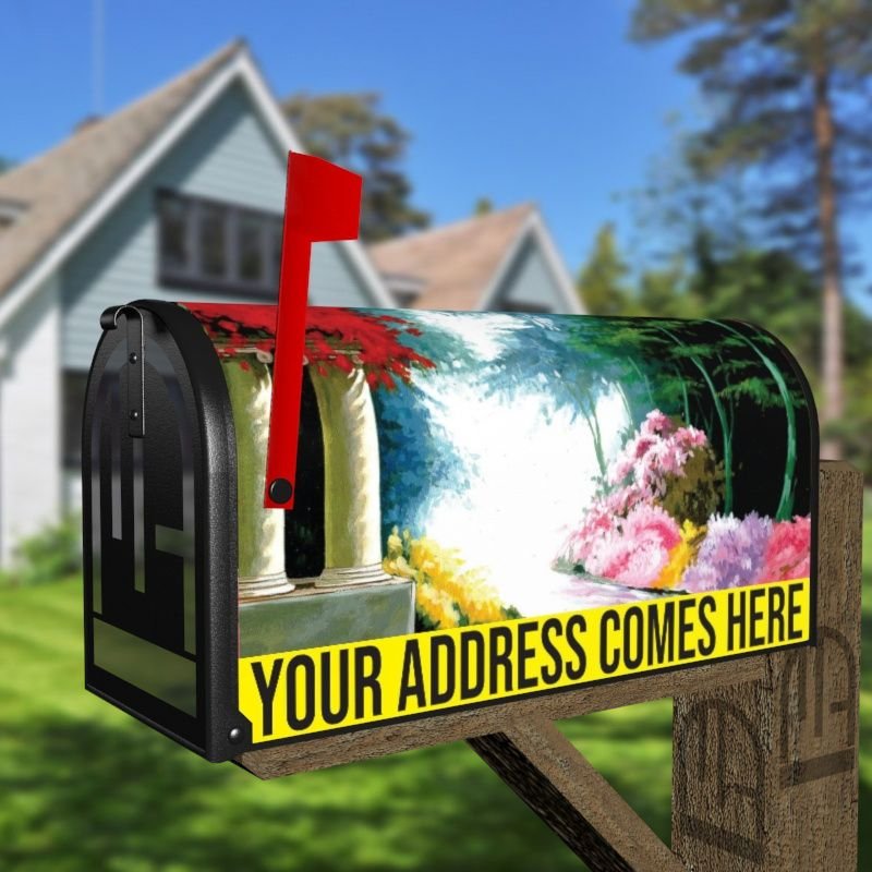 Grab this creative Garden of the Castle #2 rural/curbside/farm mailbox cover as self adhesive vinyl or magnetic cover. Our magnetic covers have the magnetic surface under the whole design, not only two magnet strips like in cheaper products. We also offer both the self adhesive and the magnetic covers with regular opaque white vinyl or reflective vinyl which works the same way as the licence plates or road signs; pretty visible at night. We make these covers for both large and small mailboxes.