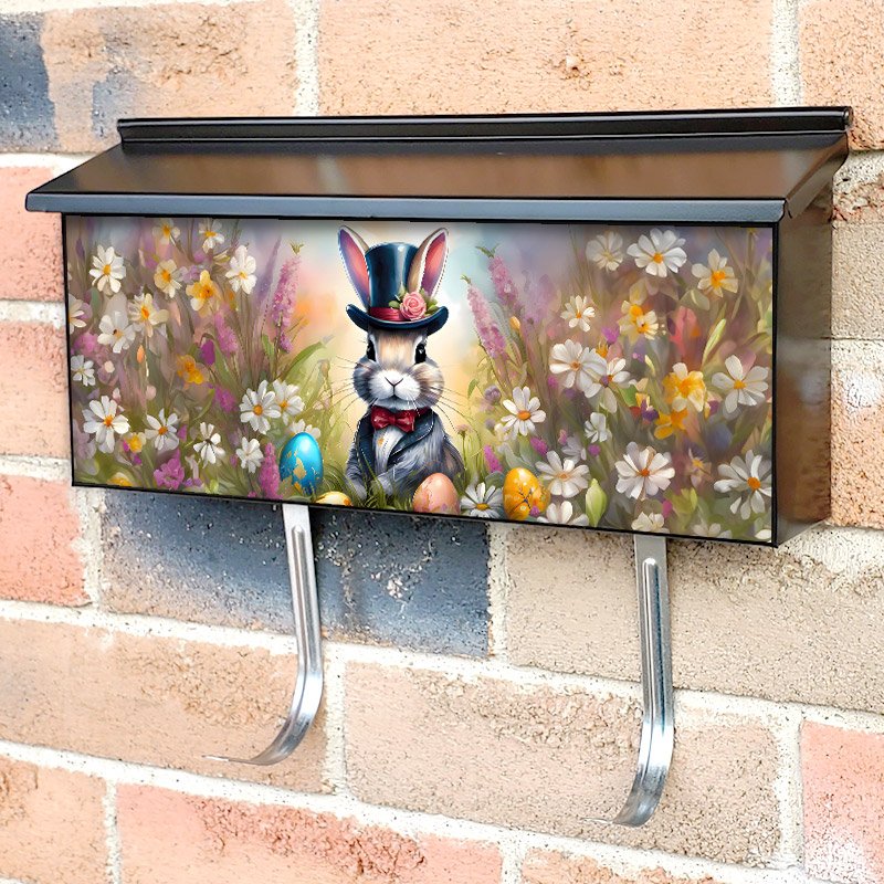 Gentleman Easter Bunny and Eggs Townhouse Mailbox Cover