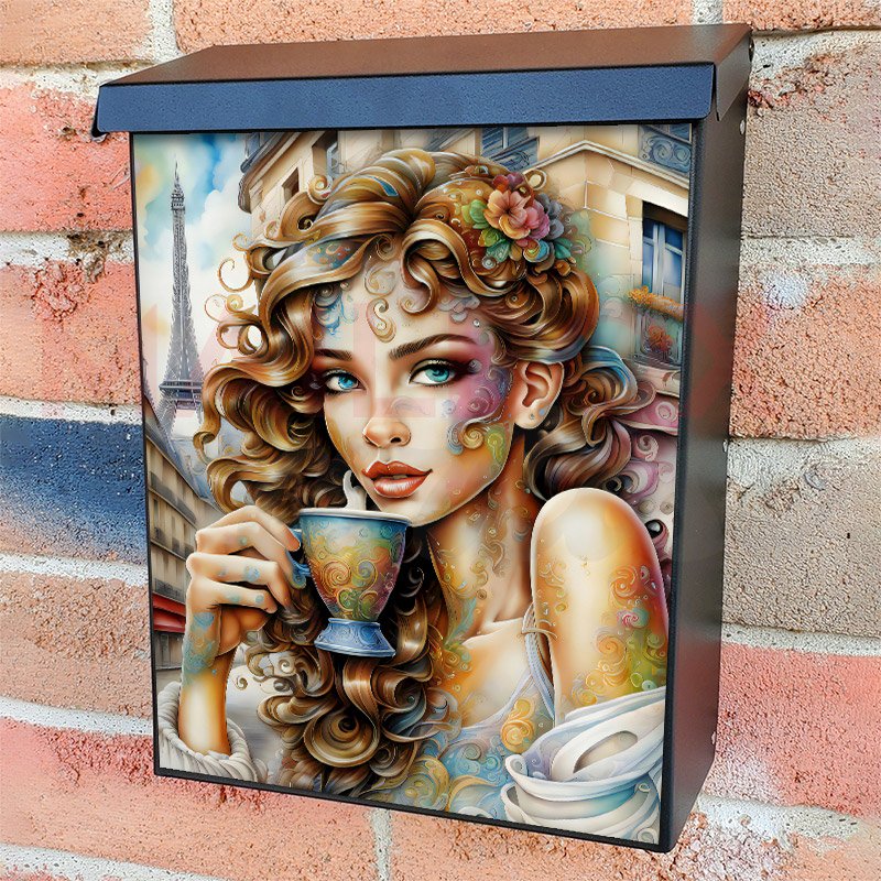 This Girl Drinking Coffee in Paris mailbox design was created by Krisztina Soos