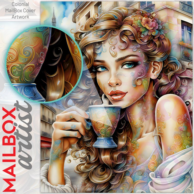 Girl Drinking Coffee in Paris Colonial Mailbox Cover