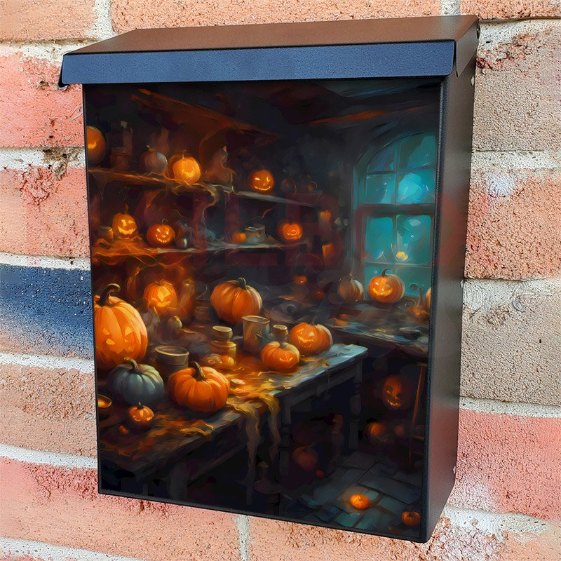Glowing Pumpkins in the Witch’s Kitchen Colonial Mailbox Cover