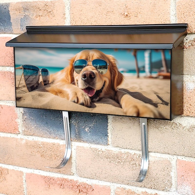 Applying your Golden Retriever Dog Is On Summer Vacation townhouse / ranch mailbox cover it’s pretty easy to convert your mailbox to a special and unique item. These covers require a flat surface, so they work with townhouse / ranch mailboxes that do not have any embossed decoration or signs. Magnetic mailbox covers work with steel boxes, for aluminum and plastic boxes we offer the self-adhesive vinyl covers. In case your mailbox doesn’t work with these covers, you can purchase the preinstalled cover on a brand new mailbox as well. Also, you can create your custom townhouse / ranch mailbox cover using you own pictures, adding your name, street number, etc.