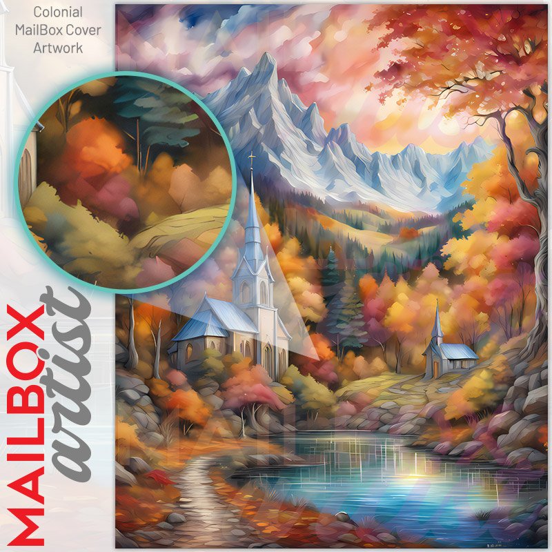With this Gorgeous Autumn Churches by the Lake colonial mailbox cover it’s pretty easy to convert your mailbox to a special and unique item. These covers require a flat surface, so they work with colonial mailboxes that do not have any embossed decoration or signs. Magnetic mailbox covers work with steel colonial boxes only, while self-adhesive vinyl covers are available for aluminum, plastic and steel boxes. We also offer both self-adhesive and magnetic covers with regular opaque white vinyl or reflective vinyl, which works similarly to license plates or road signs. The reflective option makes the entire cover’s surface reflective, ensuring visibility at night. In case your mailbox doesn’t work with these covers, you can purchase the preinstalled cover on a brand new mailbox as well. Also, you can create your custom colonial mailbox cover using you own pictures, adding your name, street number, etc.
