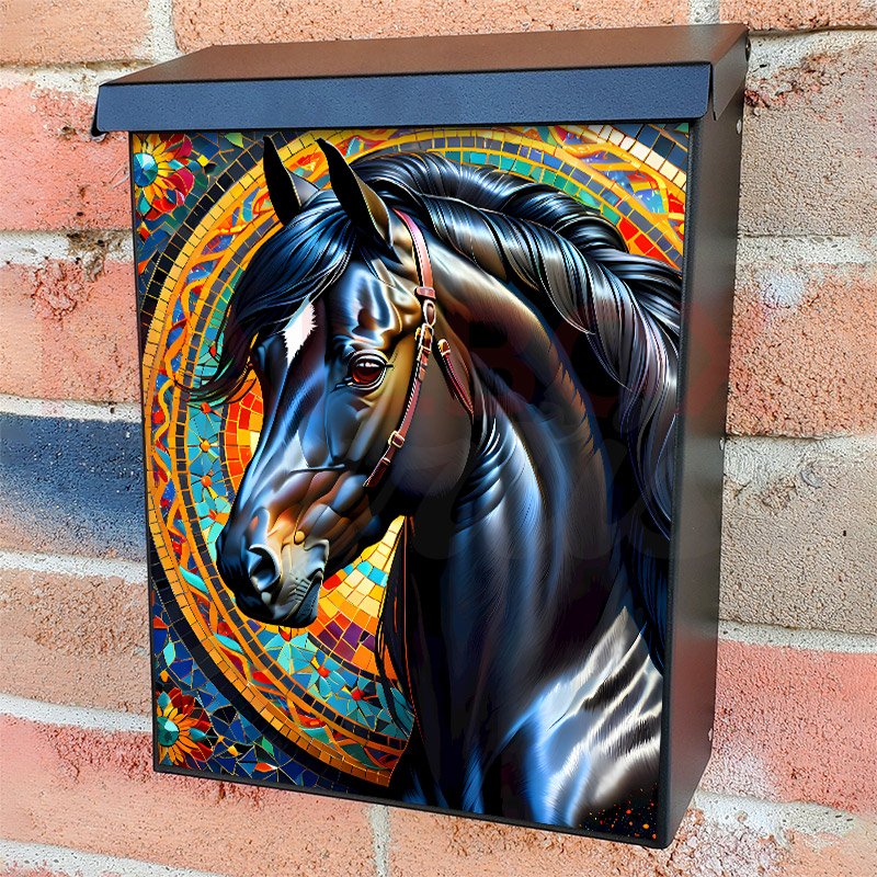 This Gorgeous Mosaic Black Horse mailbox design was created by Krisztina Soos