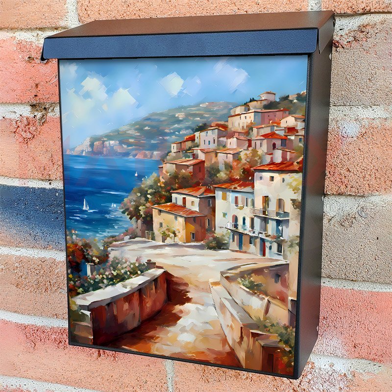 This Gorgeous Seaside Town mailbox design was created by Krisztina Soos