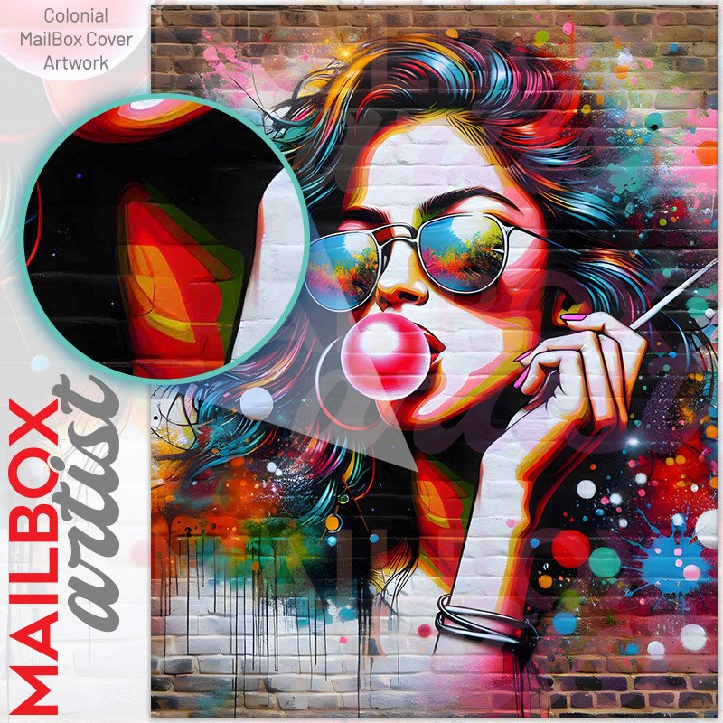 Graffiti Girl with a Bubblegum Colonial Mailbox Cover