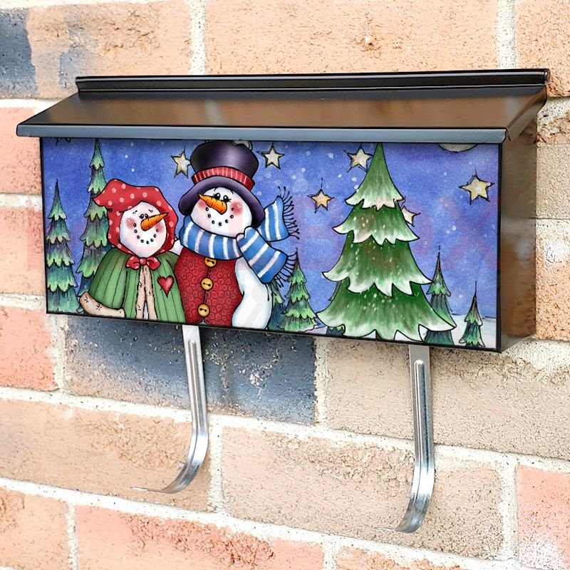 Applying your Grandma and Grandpa Snowman #1 townhouse / ranch mailbox cover it’s pretty easy to convert your mailbox to a special and unique item. These covers require a flat surface, so they work with townhouse / ranch mailboxes that do not have any embossed decoration or signs. Magnetic mailbox covers work with steel boxes, for aluminum and plastic boxes we offer the self-adhesive vinyl covers. In case your mailbox doesn’t work with these covers, you can purchase the preinstalled cover on a brand new mailbox as well. Also, you can create your custom townhouse / ranch mailbox cover using you own pictures, adding your name, street number, etc.