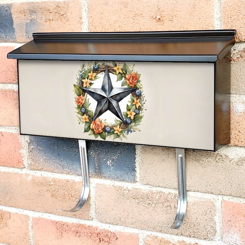 Applying your Grey Country Prim Barn Star and Wreath townhouse / ranch mailbox cover it’s pretty easy to convert your mailbox to a special and unique item. These covers require a flat surface, so they work with townhouse / ranch mailboxes that do not have any embossed decoration or signs. Magnetic mailbox covers work with steel boxes, for aluminum and plastic boxes we offer the self-adhesive vinyl covers. In case your mailbox doesn’t work with these covers, you can purchase the preinstalled cover on a brand new mailbox as well. Also, you can create your custom townhouse / ranch mailbox cover using you own pictures, adding your name, street number, etc.