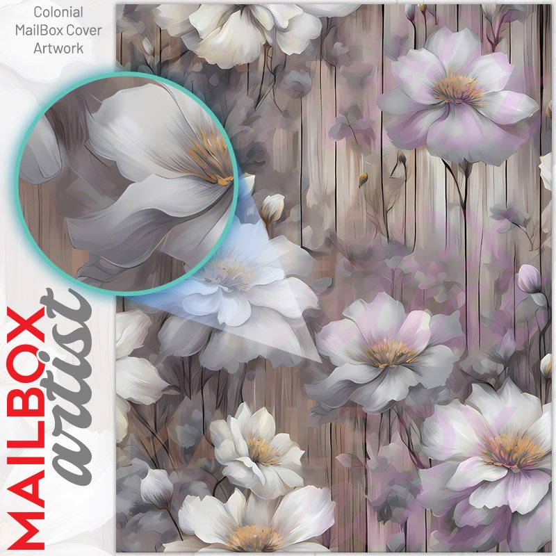 With this Grey Flowers on Wood Background colonial mailbox cover it’s pretty easy to convert your mailbox to a special and unique item. These covers require a flat surface, so they work with colonial mailboxes that do not have any embossed decoration or signs. Magnetic mailbox covers work with steel colonial boxes only, while self-adhesive vinyl covers are available for aluminum, plastic and steel boxes. We also offer both self-adhesive and magnetic covers with regular opaque white vinyl or reflective vinyl, which works similarly to license plates or road signs. The reflective option makes the entire cover’s surface reflective, ensuring visibility at night. In case your mailbox doesn’t work with these covers, you can purchase the preinstalled cover on a brand new mailbox as well. Also, you can create your custom colonial mailbox cover using you own pictures, adding your name, street number, etc.