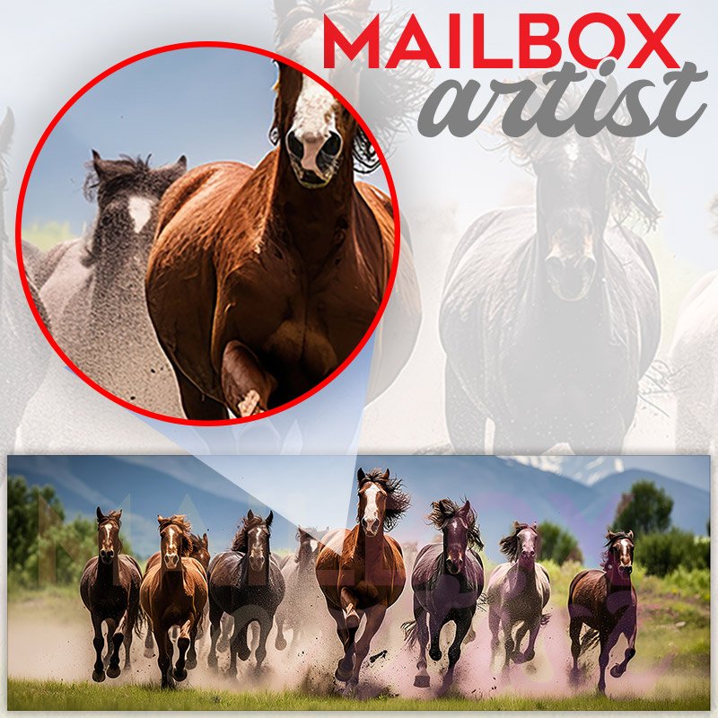 Applying your Group Of Horses Running Outdoor townhouse / ranch mailbox cover it’s pretty easy to convert your mailbox to a special and unique item. These covers require a flat surface, so they work with townhouse / ranch mailboxes that do not have any embossed decoration or signs. Magnetic mailbox covers work with steel boxes, for aluminum and plastic boxes we offer the self-adhesive vinyl covers. In case your mailbox doesn’t work with these covers, you can purchase the preinstalled cover on a brand new mailbox as well. Also, you can create your custom townhouse / ranch mailbox cover using you own pictures, adding your name, street number, etc.