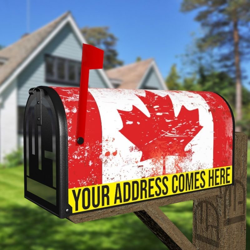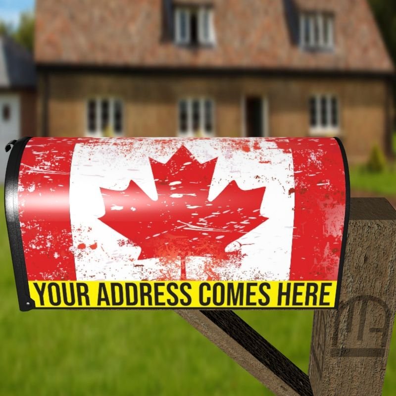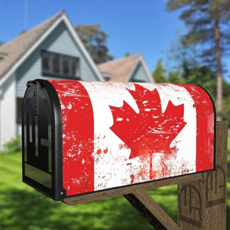 Grab this creative Grungy Canadian Maple Leaf Flag rural/curbside/farm mailbox cover as self adhesive vinyl or magnetic cover. Our magnetic covers have the magnetic surface under the whole design, not only two magnet strips like in cheaper products. We also offer both the self adhesive and the magnetic covers with regular opaque white vinyl or reflective vinyl which works the same way as the licence plates or road signs; pretty visible at night. We make these covers for both large and small mailboxes.