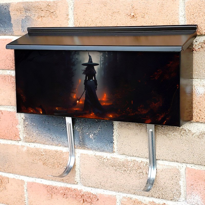 Applying your Halloween Night Witch townhouse / ranch mailbox cover it’s pretty easy to convert your mailbox to a special and unique item. These covers require a flat surface, so they work with townhouse / ranch mailboxes that do not have any embossed decoration or signs. Magnetic mailbox covers work with steel boxes, for aluminum and plastic boxes we offer the self-adhesive vinyl covers. In case your mailbox doesn’t work with these covers, you can purchase the preinstalled cover on a brand new mailbox as well. Also, you can create your custom townhouse / ranch mailbox cover using you own pictures, adding your name, street number, etc.
