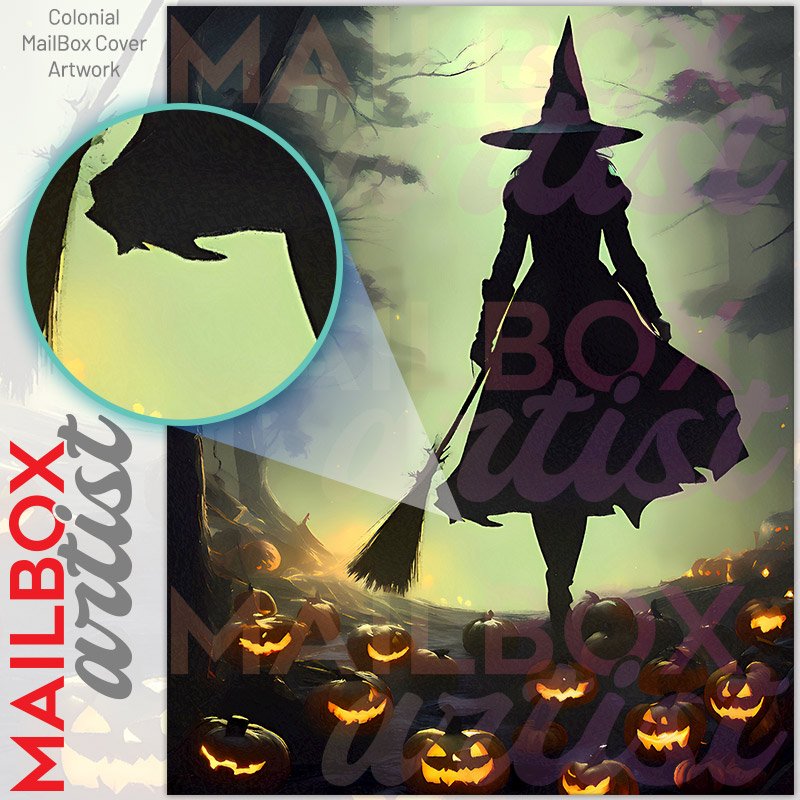Halloween Witch and Pumpkins Colonial Mailbox Cover