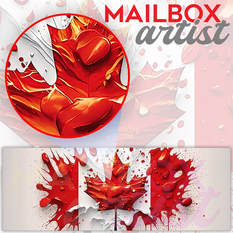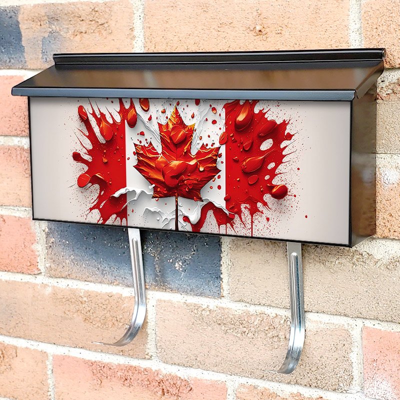 Applying your Happy Canada Day Flag With Splash Effect townhouse / ranch mailbox cover it’s pretty easy to convert your mailbox to a special and unique item. These covers require a flat surface, so they work with townhouse / ranch mailboxes that do not have any embossed decoration or signs. Magnetic mailbox covers work with steel boxes, for aluminum and plastic boxes we offer the self-adhesive vinyl covers. In case your mailbox doesn’t work with these covers, you can purchase the preinstalled cover on a brand new mailbox as well. Also, you can create your custom townhouse / ranch mailbox cover using you own pictures, adding your name, street number, etc.