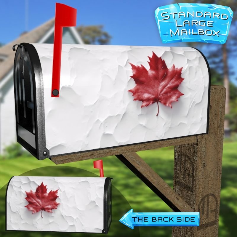Dressing up your rural farm mailbox with the Happy Canada Day Red Silk Maple Leaf On White Textured Wall mailbox cover is an easy way to convert it into a unique and special item. These covers require a smooth surface, so they are compatible with rural farm mailboxes that do not have any embossed decorations or signs. Magnetic mailbox covers work with steel boxes only, while self-adhesive vinyl covers are available for aluminum, plastic and steel boxes. If your mailbox is not compatible with these covers, you can purchase a brand new mailbox with a preinstalled cover. Additionally, you have the option to create a custom rural farm mailbox cover with your own pictures, name, street number, etc.