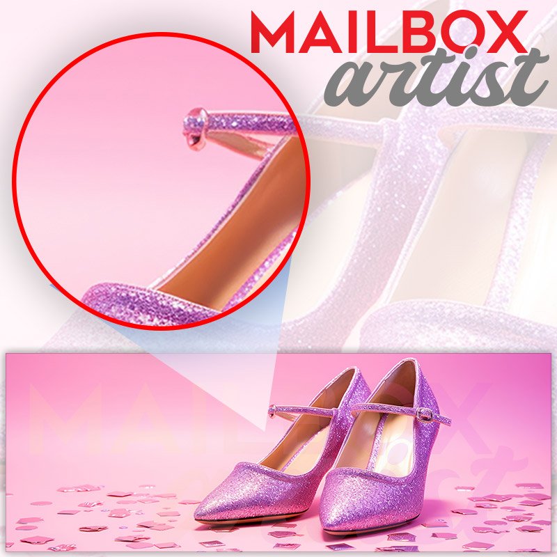 This High Heel Shoes On A Pink Background With Sparking Glitter mailbox design was created by Krisztina Soos