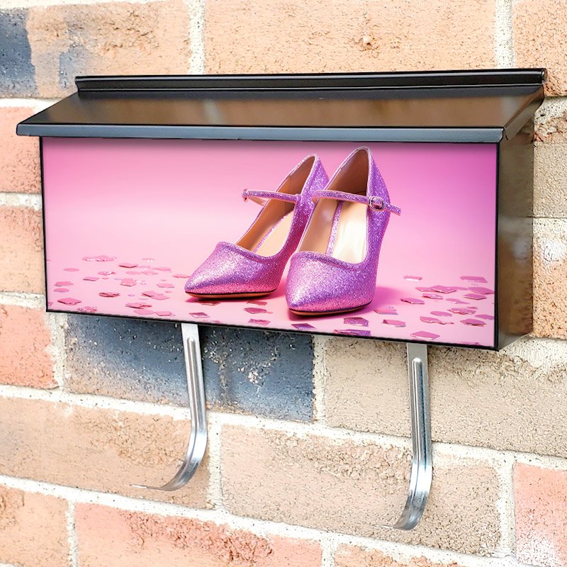 Applying your High Heel Shoes On A Pink Background With Sparking Glitter townhouse / ranch mailbox cover it’s pretty easy to convert your mailbox to a special and unique item. These covers require a flat surface, so they work with townhouse / ranch mailboxes that do not have any embossed decoration or signs. Magnetic mailbox covers work with steel boxes, for aluminum and plastic boxes we offer the self-adhesive vinyl covers. In case your mailbox doesn’t work with these covers, you can purchase the preinstalled cover on a brand new mailbox as well. Also, you can create your custom townhouse / ranch mailbox cover using you own pictures, adding your name, street number, etc.