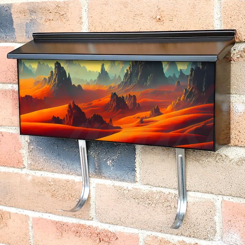 Applying your Hills in the Desert townhouse / ranch mailbox cover it’s pretty easy to convert your mailbox to a special and unique item. These covers require a flat surface, so they work with townhouse / ranch mailboxes that do not have any embossed decoration or signs. Magnetic mailbox covers work with steel boxes, for aluminum and plastic boxes we offer the self-adhesive vinyl covers. In case your mailbox doesn’t work with these covers, you can purchase the preinstalled cover on a brand new mailbox as well. Also, you can create your custom townhouse / ranch mailbox cover using you own pictures, adding your name, street number, etc.