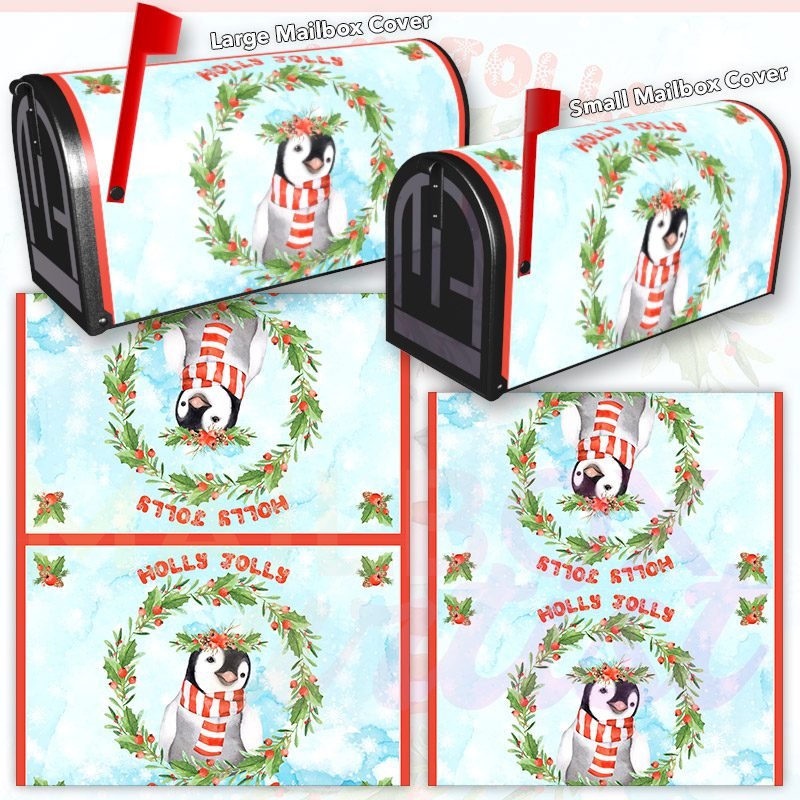 Dressing up your rural farm mailbox with the Holly Jolly Christmas Penguin mailbox cover is an easy way to convert it into a unique and special item. These covers require a smooth surface, so they are compatible with rural farm mailboxes that do not have any embossed decorations or signs. Magnetic mailbox covers work with steel boxes only, while self-adhesive vinyl covers are available for aluminum, plastic and steel boxes. If your mailbox is not compatible with these covers, you can purchase a brand new mailbox with a preinstalled cover. Additionally, you have the option to create a custom rural farm mailbox cover with your own pictures, name, street number, etc.