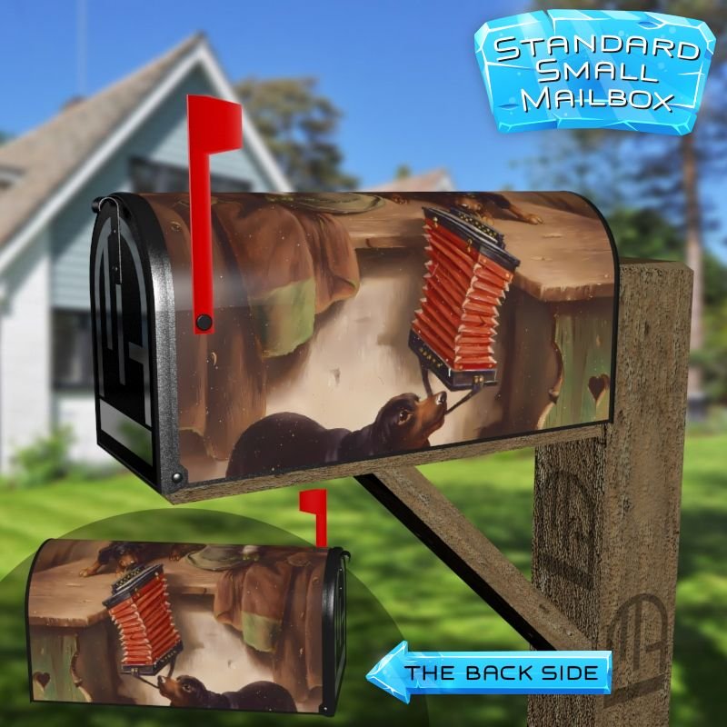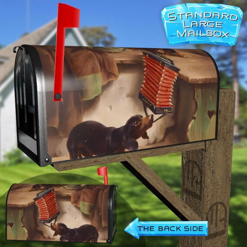 Dressing up your rural farm mailbox with the How it Will End by L. Riedler Hunde mailbox cover is an easy way to convert it into a unique and special item. These covers require a smooth surface, so they are compatible with rural farm mailboxes that do not have any embossed decorations or signs. Magnetic mailbox covers work with steel boxes only, while self-adhesive vinyl covers are available for aluminum, plastic and steel boxes. If your mailbox is not compatible with these covers, you can purchase a brand new mailbox with a preinstalled cover. Additionally, you have the option to create a custom rural farm mailbox cover with your own pictures, name, street number, etc.