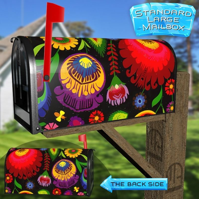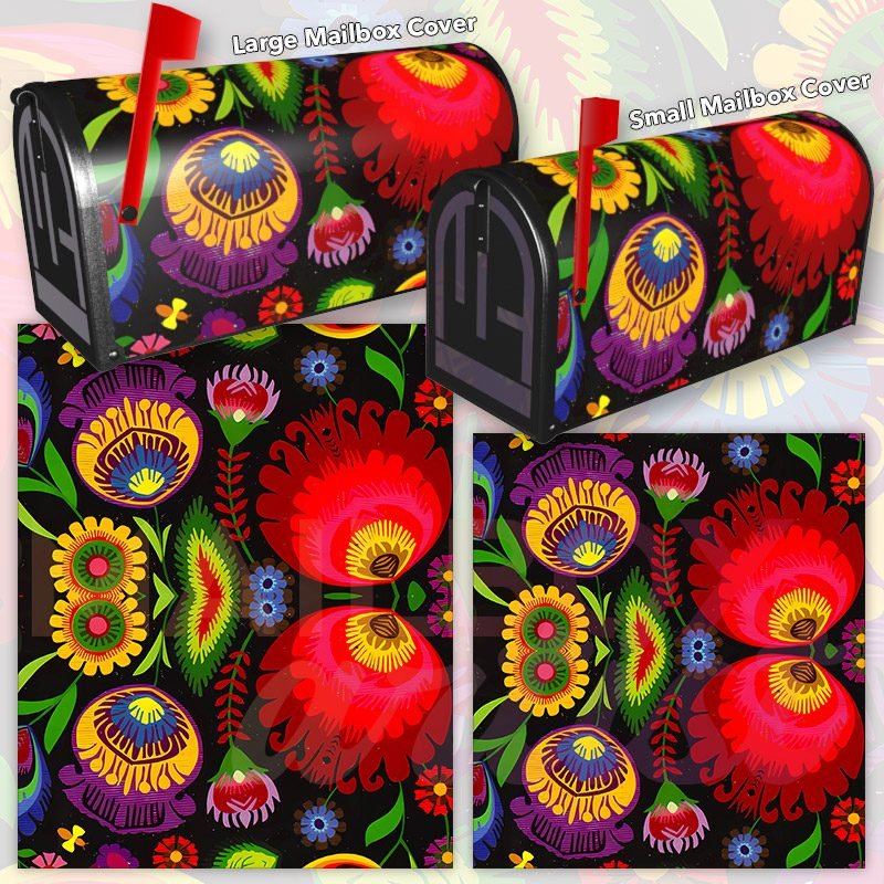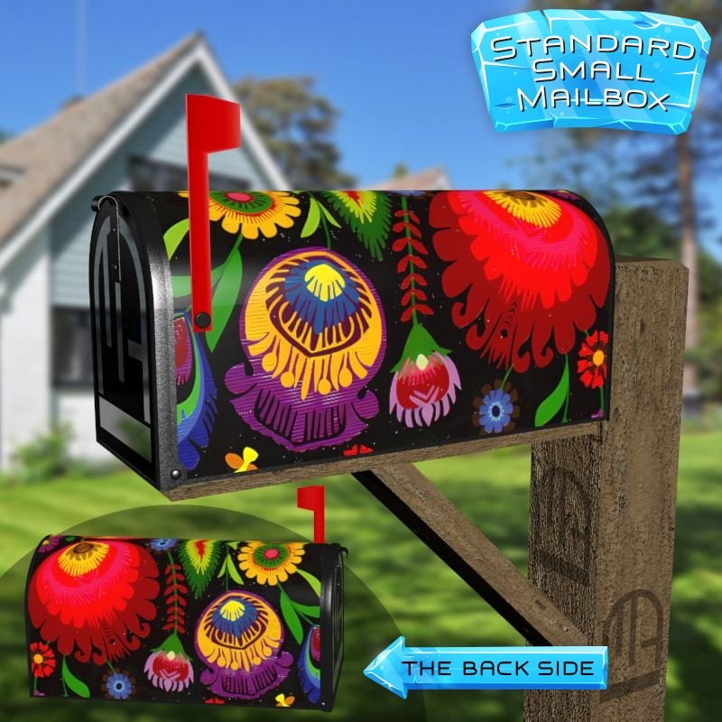 Dressing up your rural farm mailbox with the Hungarian Folklore Flowers mailbox cover is an easy way to convert it into a unique and special item. These covers require a smooth surface, so they are compatible with rural farm mailboxes that do not have any embossed decorations or signs. Magnetic mailbox covers work with steel boxes only, while self-adhesive vinyl covers are available for aluminum, plastic and steel boxes. If your mailbox is not compatible with these covers, you can purchase a brand new mailbox with a preinstalled cover. Additionally, you have the option to create a custom rural farm mailbox cover with your own pictures, name, street number, etc.