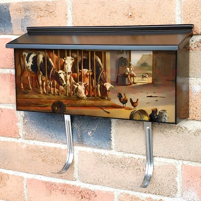 Applying your In the Stable by A. Verhoesen townhouse / ranch mailbox cover it’s pretty easy to convert your mailbox to a special and unique item. These covers require a flat surface, so they work with townhouse / ranch mailboxes that do not have any embossed decoration or signs. Magnetic mailbox covers work with steel boxes, for aluminum and plastic boxes we offer the self-adhesive vinyl covers. In case your mailbox doesn’t work with these covers, you can purchase the preinstalled cover on a brand new mailbox as well. Also, you can create your custom townhouse / ranch mailbox cover using you own pictures, adding your name, street number, etc.